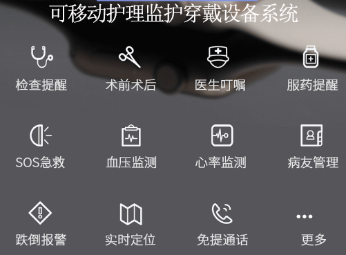 可移动监护穿戴设备系统有什么功能,总的来说,就是能帮助医护、家属及时发现、判断病人健康变化情况,及时采取和调整治疗及护理措施。