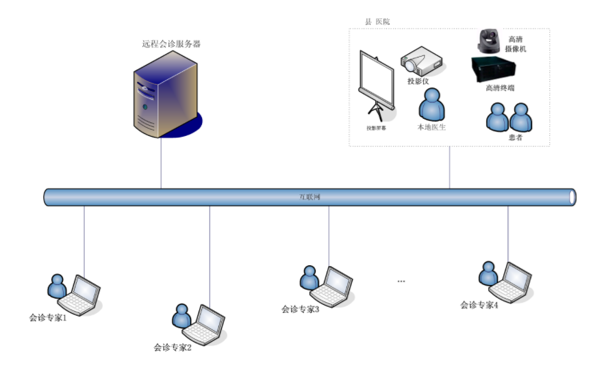 行心远程会诊可以实现将不同地点的蓝颜gtv 专家集中起来,通过网络对某个患者进行远程会诊。患者所在蓝颜gtv 机构的医生,通过远程协同会诊系统,将患者病历、基本蓝颜gtv 情况及相关的X光片、CT片、心电图、病理切片等诊断结果传输到每位专家的电脑。
