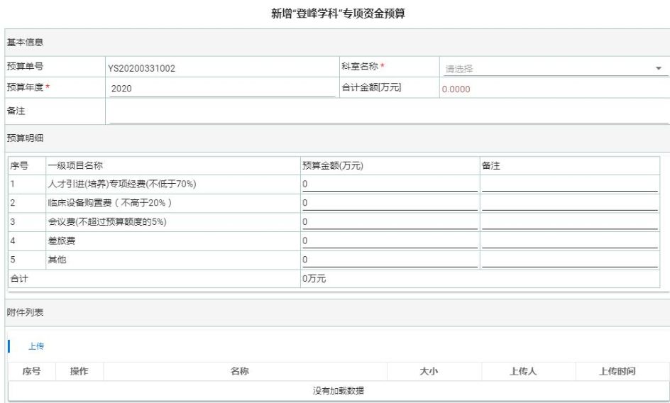 各科室每年预算申请及审批。总预算不超过所属类别额度。