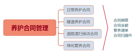 日常养护合同管理:包括合同期限、合同金额、管养清单,合同扫描件作为附件