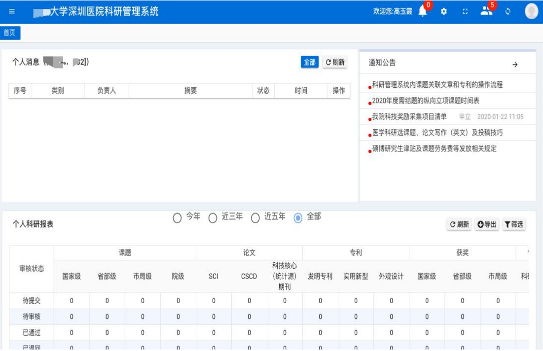 包括不限于科研大数据分析、科室科技影响力、人员科技术影响力、科题,论文、专利、奖项、著作、科研平台、任职等。